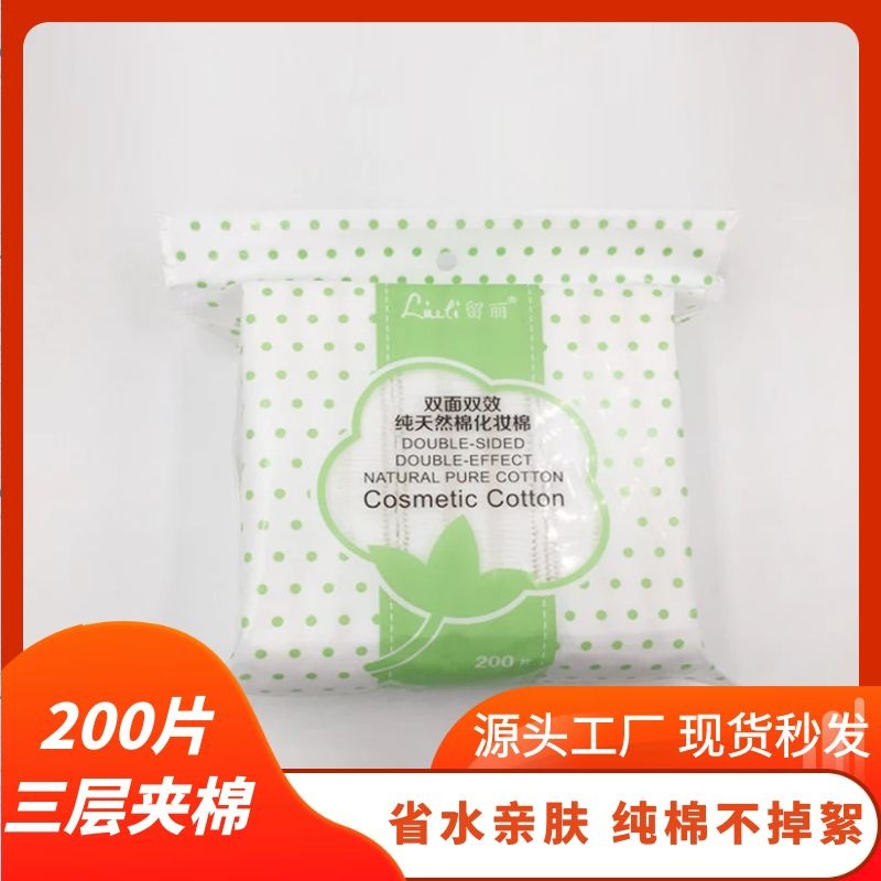 Double-Sided Thickened 3-Layer Makeup Remover Toner Pad Cotton Pads, 200 Sheets, for Wet Compression One Size/Red 10ea