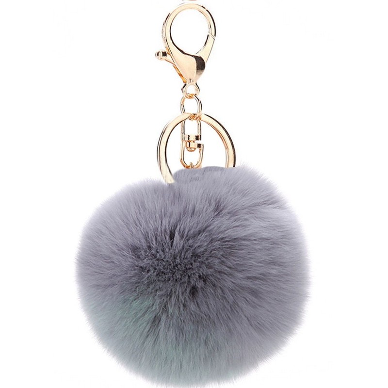 Double Smile Fluffy Bag Charm Cute Pom Keychain Pendant Fake Fur Accessory, gray
