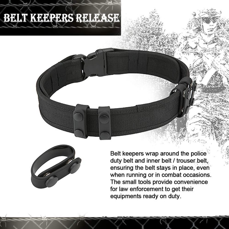 Belt keepers wrap around the police duty belt and inner belt / trouser belt, ensuring the belt stays in place, even when running or in combat occasions. The small tools provide convenience for law enforcement to get their equipments ready on duty.