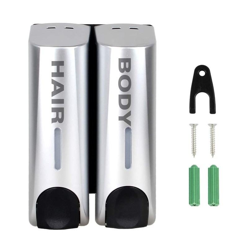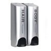 Double Soap Dispenser For Shower Gel, Shampoo, Conditioner, ABS (Acrylonitrile Butadiene Styrene), Wall Mounted, Silver