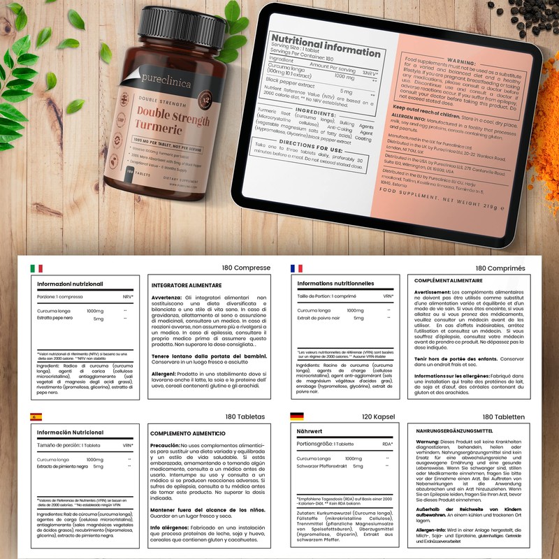 - 2 to 10 TIMES STRONGER - each tablet provides 1000mg of Turmeric per tablet, compared to the more common 100mg, 250mg or 500mg tablets. Many of our competitors advertise 500mg, 1000mg, or even 1200mg Turmeric, but fail to mention until the small print that this is not per tablet, but rather per 2, 3 or even 6 tablet serving per day. With ours, you need only take one 1000mg tablet and would need to take up to 10 of our competitors tablets to get the same benefit as ours!