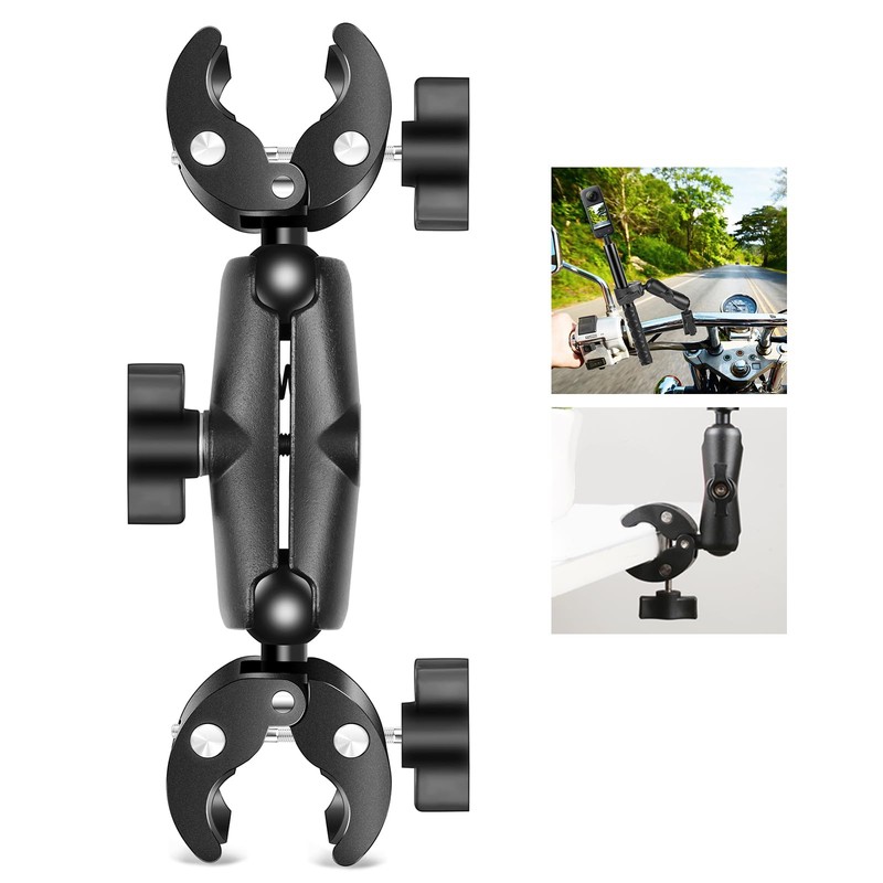 Double Head Super Clamp Crab Action Camera 360° Rotation Ball Head for Riding Holder Fixed