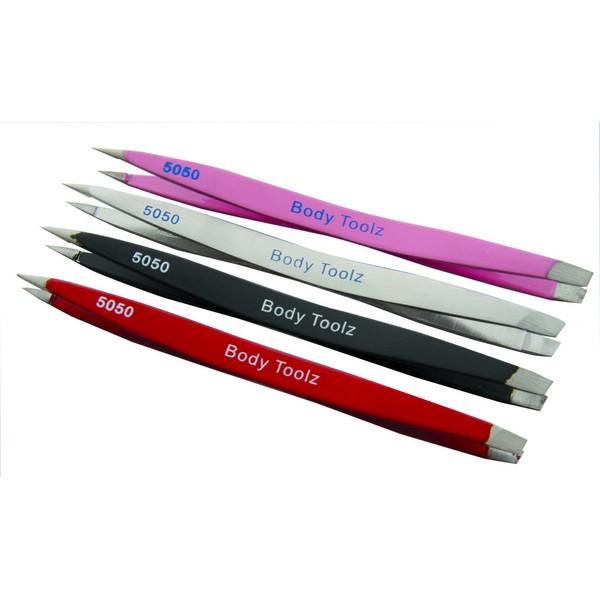 Revolutionary, Two Tips In One Tweezer by Body Toolz. Slant tips for quick grooming. Pointed tips for fine tweezing. Made of Stainless steel, will not rust. Professional crafted. Grabs the finest hairs. Great for ingrowns and splinters. Comes in Red, Pink, Black & Satin. A must have! Patent Design