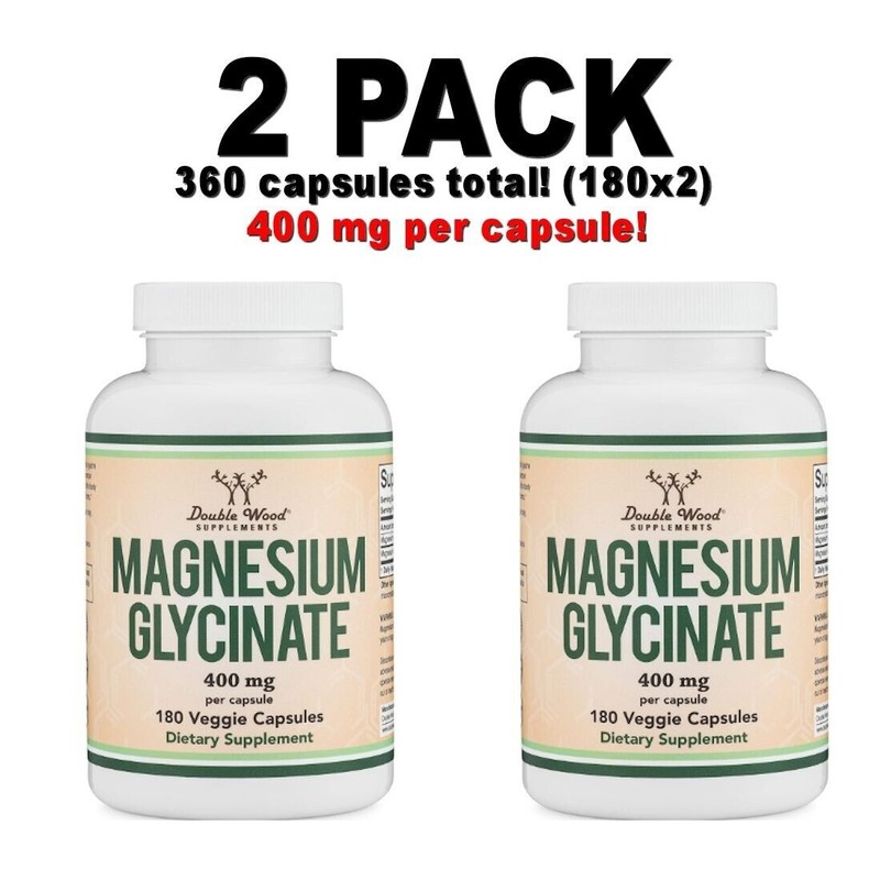 Double Wood Magnesium Glycinate, 2 PACK, 400 mg per capsule, 180 veggie capsules (360 total)