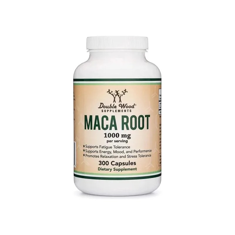 - La Raíz de Maca de Double Wood es un suplemento alimenticio de 1000 mg en formato de 300 cápsulas sin sabor. Se recomienda tomar una dosis de 1.000 mg – 2.000 mg (2