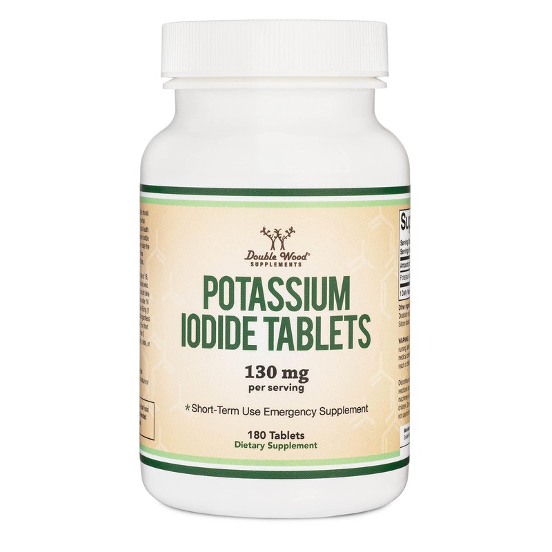 Potassium Iodide 130mg Tablets - Emergency Use for Exposure - 180 Count, 3 Month Supply - Double Wood Supplements