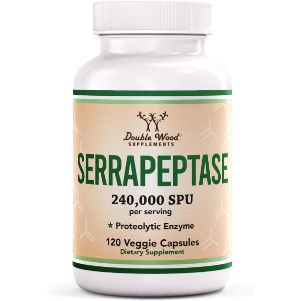 Double Wood Supplements Serrapeptase 240,000 SPU Max Potency (120 Veggie Capsules) Proteolytic Enzyme fo