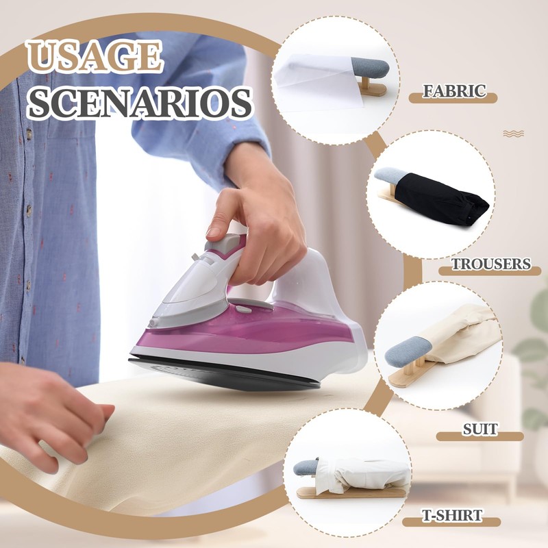 - A dream set for sewing/tailor: ironing board is strong, the bracket is stable, compact design. Bottom is non-slip and a bag of non-slip stickers are included for you to apply if you want to increase the non-slip resistance. The narrow front shape is suitable for ironing sleeves, trousers and collars, making it easier to put clothes through the cuffs