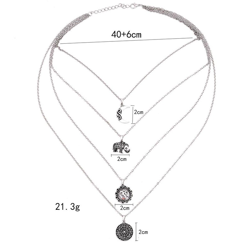 DoubleNine Long Multilayer Statement Necklace 4 Layer Hippie Boho Circle Drops Multistrand Bohemian Necklace Layered for Women