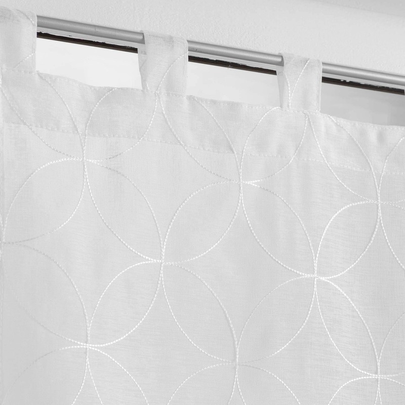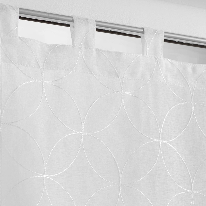 Douceur d'Intérieur 2 x 60 x 90 cm Sandblasted Embroidered Olympic White Tab Top Curtains