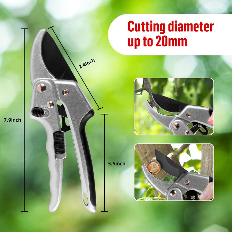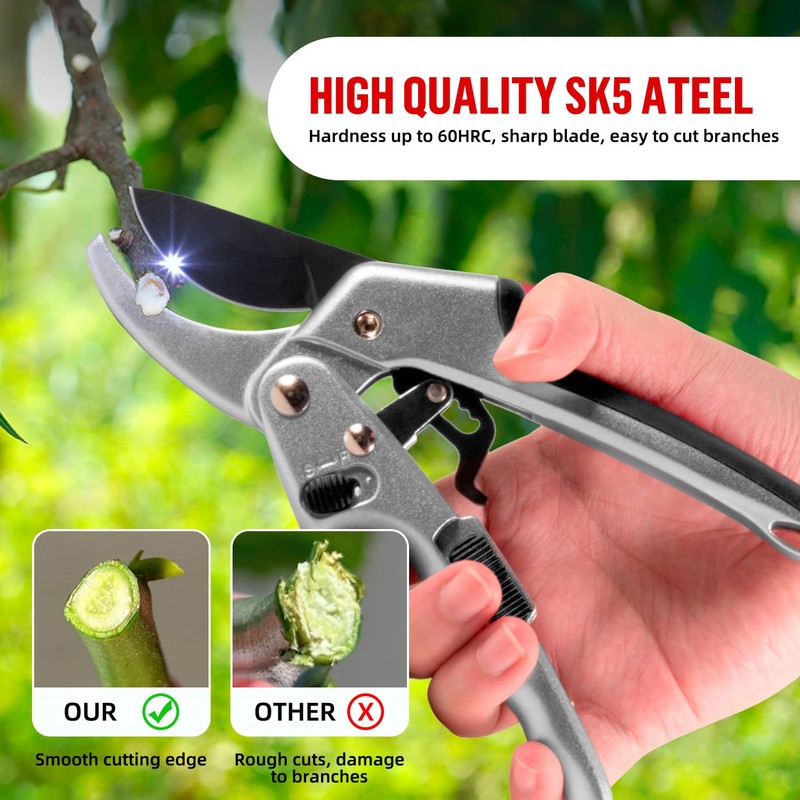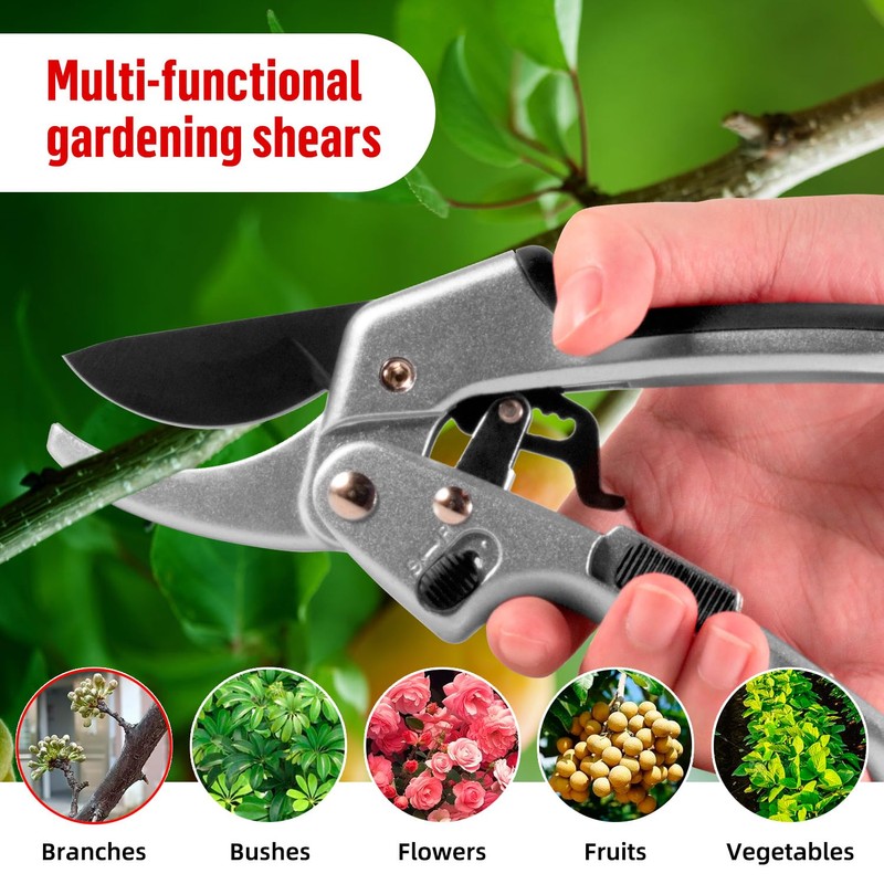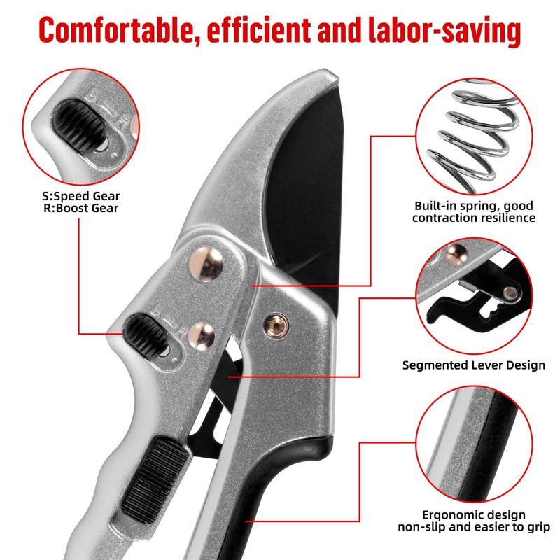 - 【2-Modes Adjustable Pruning Shears】-Our model come out for the unique design of plant shears, and offering two distinct working modes. The traditional Single-Cut mode for everyday pruning tasks, another advanced Ratchet-Cut model with a 3-times gravity for dealing with thicker branches