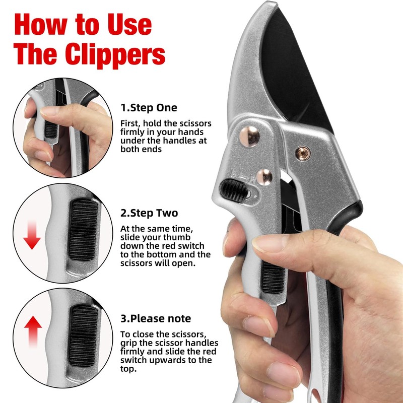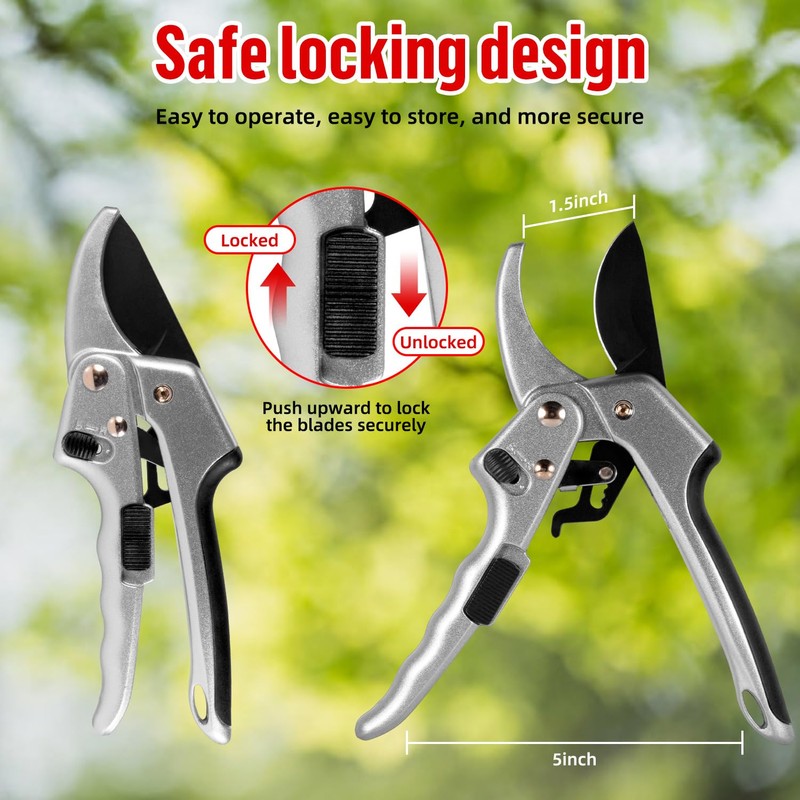- 【Safe to Lock & Easily Handle】- The garden clippers equipped with a secure safety lock. You can easily open and close the gardening scissors with just one hand. Push upward to lock the blades securely. This is a good way to avoid accidental injuries, the garden pruners is easy to operate and store, and more secure