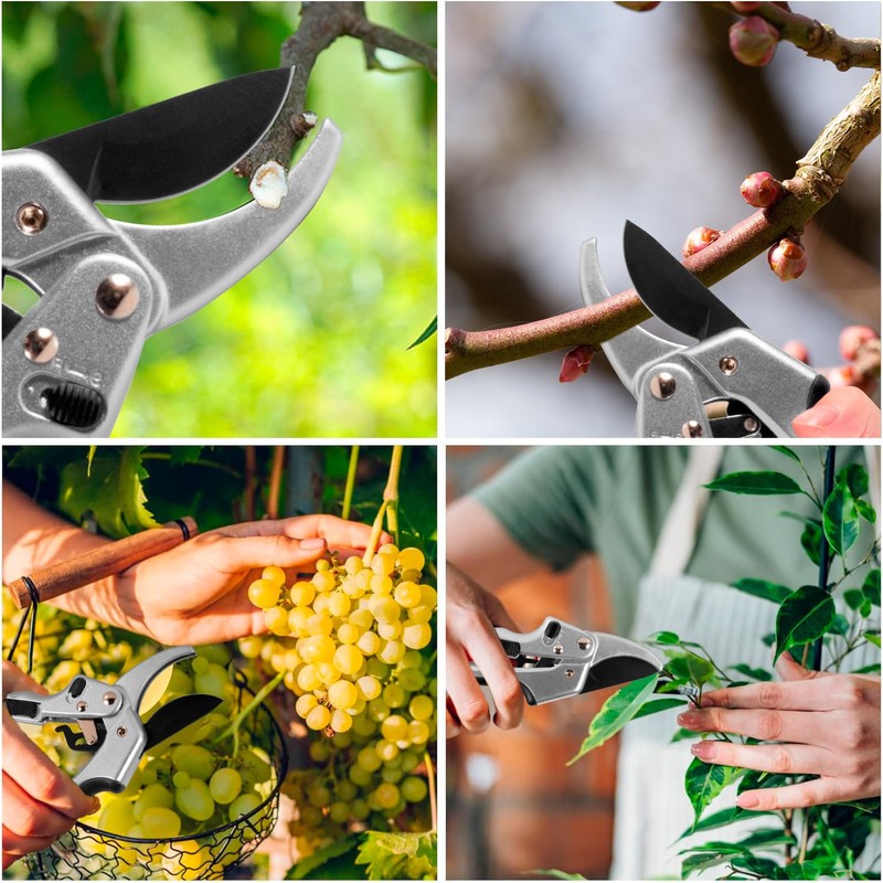 Douevo Pruning Shears for Gardening Shears Garden Scissors Heavy Duty 2-Modes Adjustable Garden Shears Pruning Safe Locked Design Garden Clippers Handheld Pruners for Gardening, Silver Black