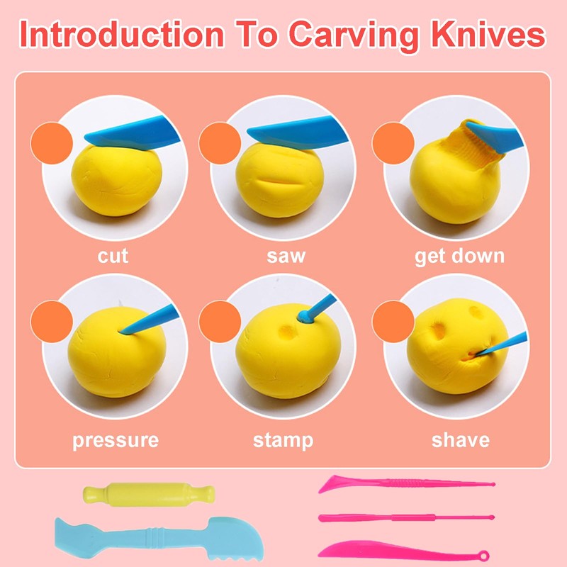• Clay set: this children's dough accessory set contains 12 moulds, 12 animal shapes, 5 shaped play doh dough, 3 kneading tools. 2 tool knives. With functions such as cutting, shaping, pressing, shaping and rolling for children, children can use unlimited creativity and imagination to make different shapes and designs.