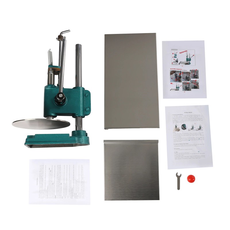 Are your dough sheets irregularly formed, uneven in thickness and inefficient, time-consuming, and labor-intensive? Well, this dough press machine will solve these problems for you. By pressing the lever, the wide, thick press plate will press down on your dough and produce a uniformly shaped sheet with ease, which is both efficient and labor-saving. Made of food-grade 304 stainless steel, it can be in direct contact with food, so you can use it with confidence. It's ideal for commercial and domestic use!