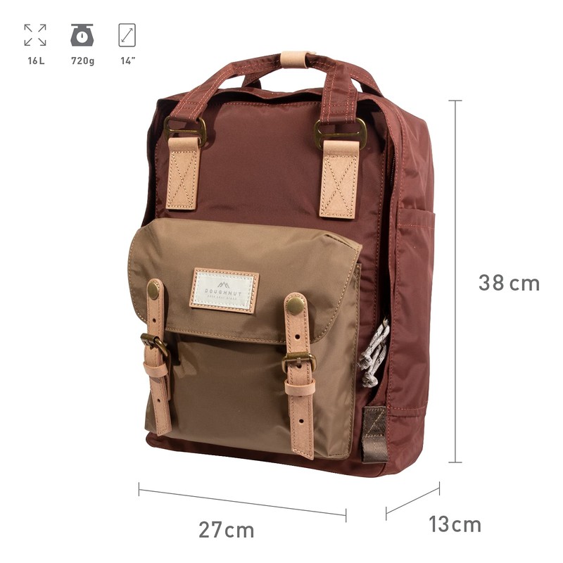 Doughnut Macaroon Jungle Unisex Backpack with Laptop Compartment, Student Backpack, Functional & Handmade, Backpack Made from Recycled PET Bottles & Ocean Waste, Daypack in Maroon x Khaki