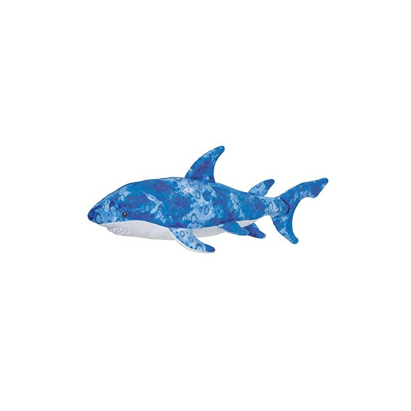 Reef is an eye-catching plush Shark from our Green Friends Collection! His angular form has been crafted with fabrics and interior fill made entirely from recycled plastics. Bubble-like spots and mottled shades of blue with a fun, watercolor texture create an aqueous appearance that suits this deep sea hunter perfectly A mouthful of felt teeth lend him a playful grin but there's nothing to fear from this cuddly Shark stuffed animal. With an array of pointed fins and bright, embroidered eyes this popular ocean predator will become the star of all your underwater adventures! Bring him home today or come and meet the other marine animals in the Douglas Green Friends Collection!