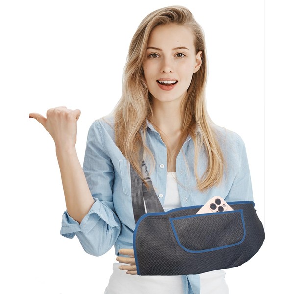 DouHeal Arm Sling, Upgraded Straps, Ultimate Comfort, Convenient Pocket, Arm Sling Shoulder Immobilizer for Shoulder Injury, Elbow Injury, Wrist Injury, Fractured Bones, Rotator Cuff Support (L, Blue & Black)