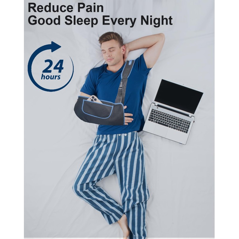 - 💪 Day & Night Extreme Comfort💪 For a better experience for patients, DouHeal arm sling uses baby-grade breathable materials to reduce skin discomfort. Lightweight materials, neck cushions, and thumb straps reduce the burden of wearing. Focus on details and consider completely from the perspective of the patient.
