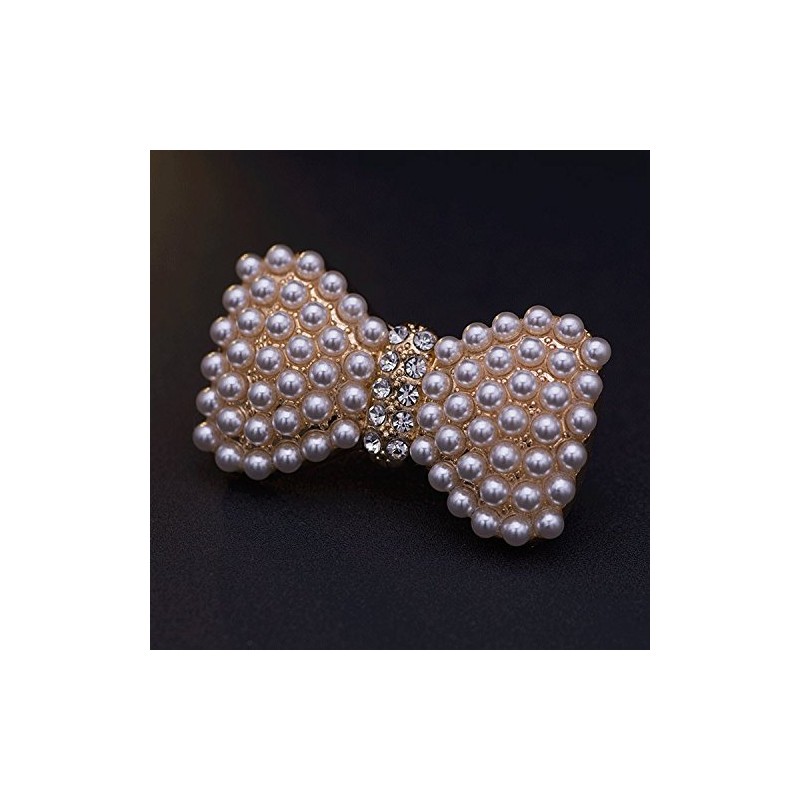 Douqu Rhinestone Crystal Pearl Silver Gold Bow Wedding Bridal High Heel Shoe Clips Removable Shoe Charms-2 Pcs (Gold Pearl)