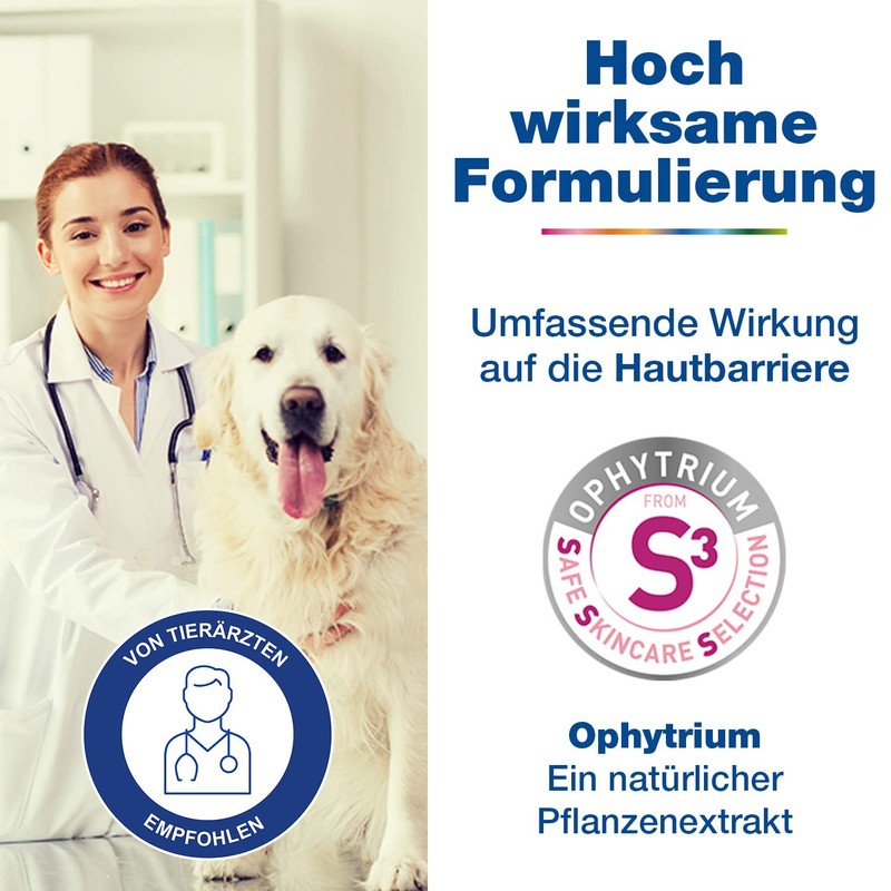 - Suitable for preventive or intervening use in areas where dogs and cats often develop irritation (e.g. caused by allergies).
