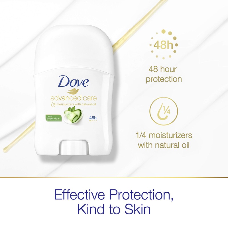- EFFECTIVE PROTECTION AND KIND TO SKIN: Dove Advanced Care Cool Essentials Antiperspirant Deodorant Stick keeps your underarms dry and odor-free for up to 48 hours while being kind to your skin