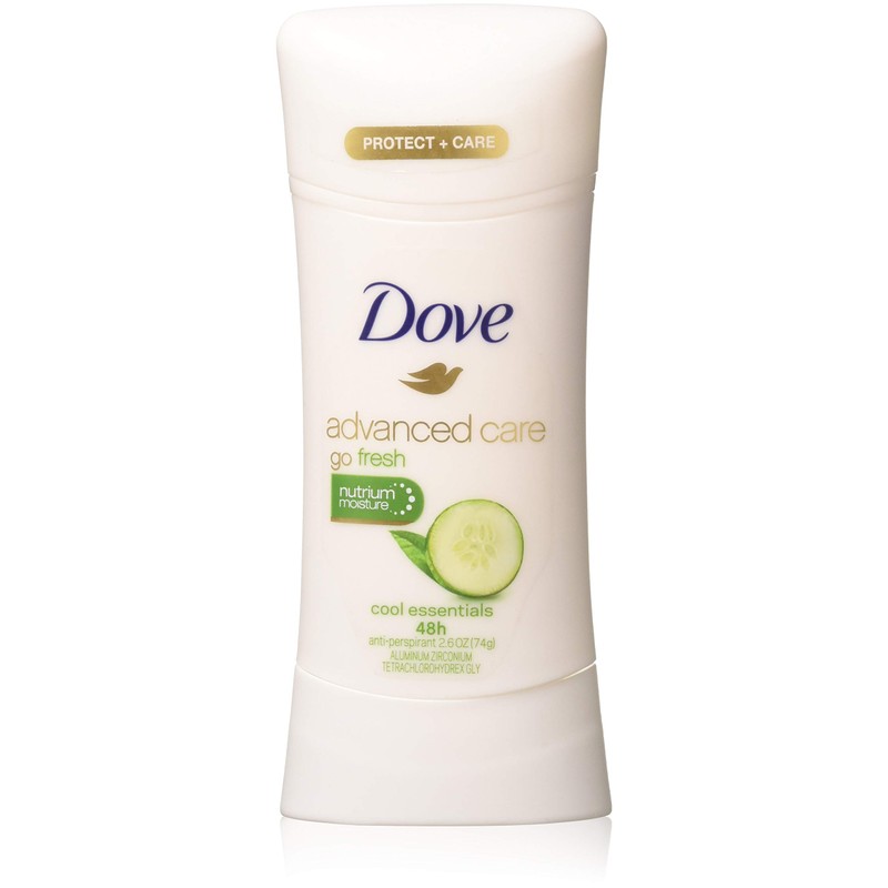 - Dove Advanced Care Antiperspirant Deodorant Cool Essentials 2.6 oz, up to 48 hours of antiperspirant protection