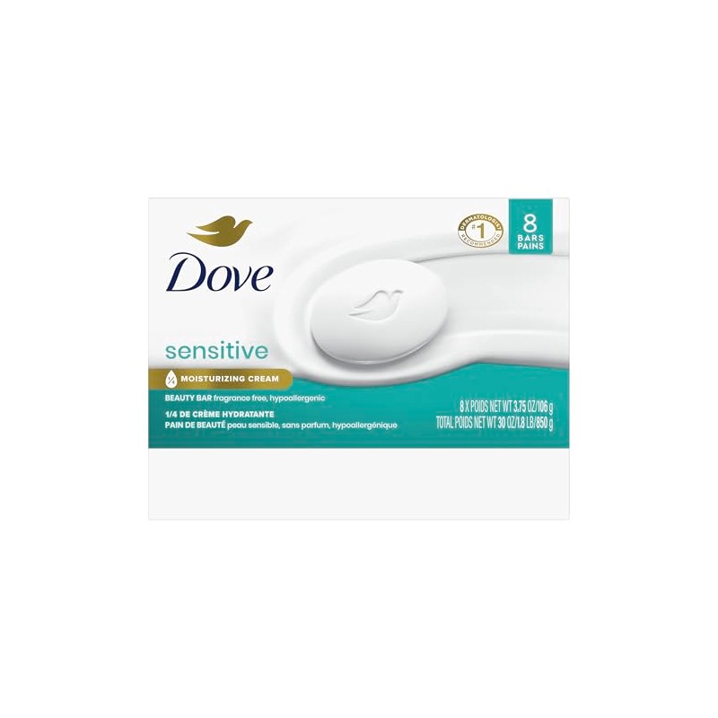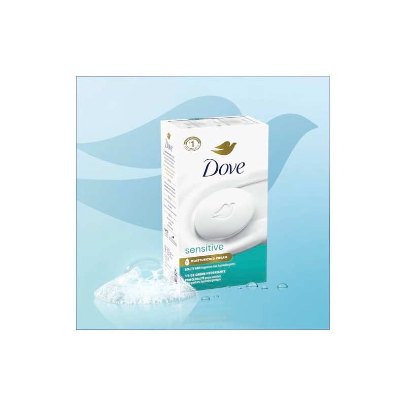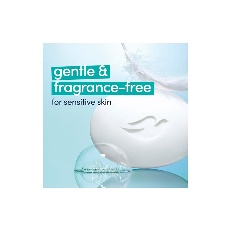 Product DescriptionThis Dove Beauty Bar offers a gentle & fragrance free cleansing experience. Unlike ordinary bar soap, the Dove Beauty Bar is made with 1/4 moisturizing cream to deeply nourish skin and help prevent dryness. This cleansing bar is uniquely created with 1/4 moisturizing cream and a plant-based cleanser for skin care that maintains pH balance and the natural skin barrier. This gentle skin cleanser is multi-purpose: gently washing away dirt and oil while moisturizing and nourishing the skin. It is gentle enough for use on face, hands, and body, as a facial cleanser and body soap bar. To use this Sensitive Beauty Bar, wet your hands and gently lather the Beauty Bar between them, then apply the lather to your face or body before rinsing thoroughly with water. As the #1 dermatologist recommended bar brand, the Dove Beauty Bar formula is free from sulfate cleansers, parabens, and phthalates. Dove believes real beauty is cruelty-free. Globally, Dove does not test on animals and is certified as PETA Approved. Through the Dove Self-Esteem Project, Dove helps parents, mentors, teachers, and youth leaders deliver self-esteem education that's reached more than 60 million young people so far. By 2030, their mission is to have helped ? billion build positive body confidence.From the Manufacturer