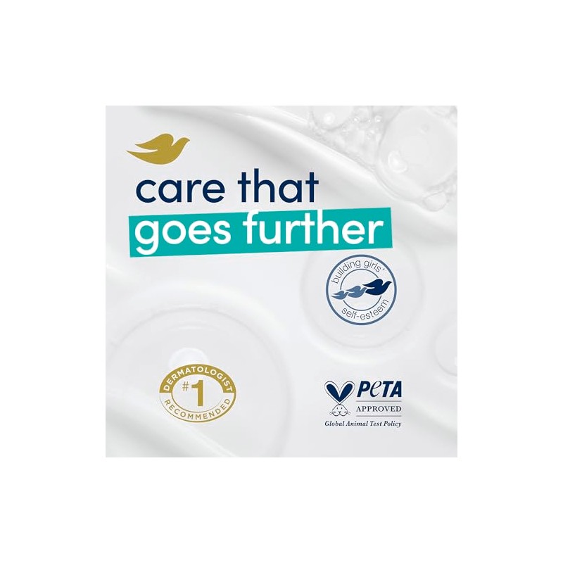 - CARE WITH YOUR CLEANSER: Globally, Dove does not test on animals and is PETA Approved. Our mission is to help the next generation of women develop a positive relationship with the way they look, helping them raise their self-esteem