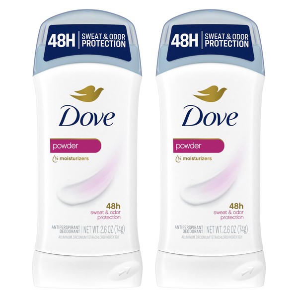 Dove Invisible Solid Antiperspirant Deodorant Stick for Women, Powder, For All Day Underarm Sweat & Odor Protection 2.6 oz 2 Count