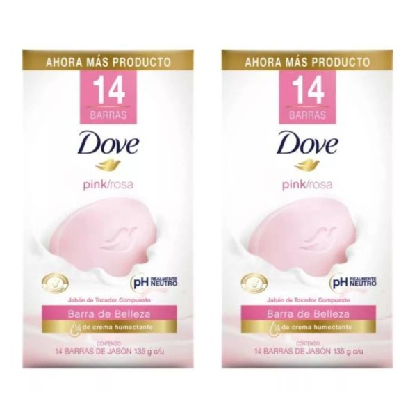 2 Paquetes de Jabón en Barra Dove Pink 14 pzas de 135 g c/u