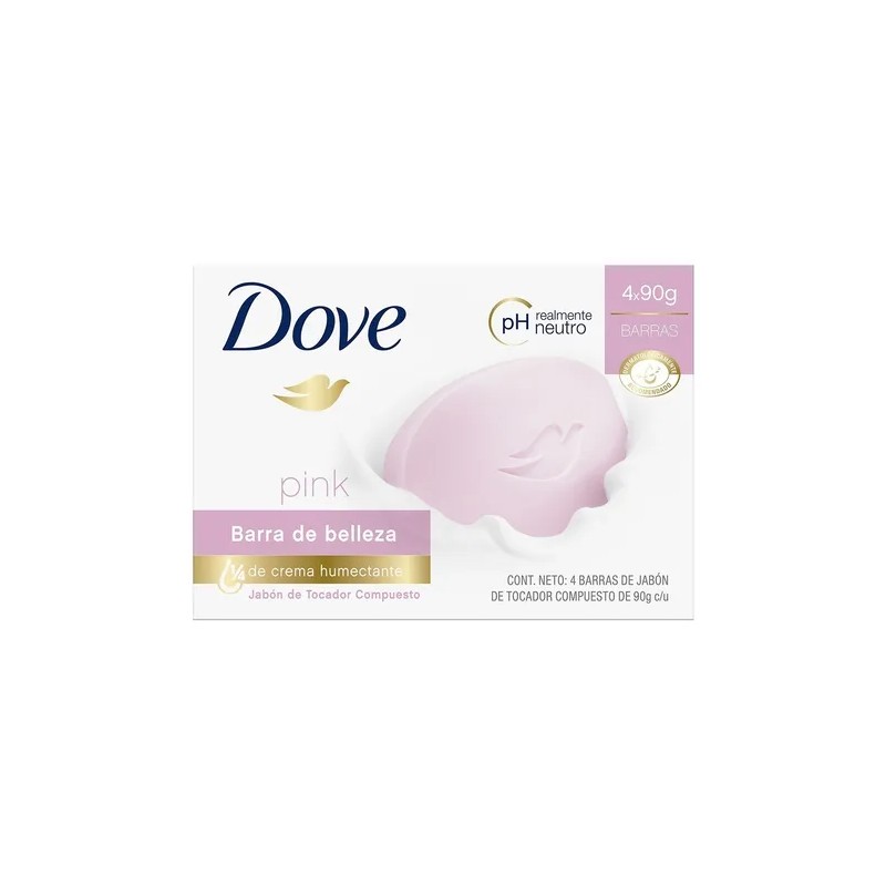 DOVE Jabón en Barra Pink para el cuidado de la piel, dejándola suave y radiante, con 1/4 de crema humectante - 4 barras de 90 g c/u