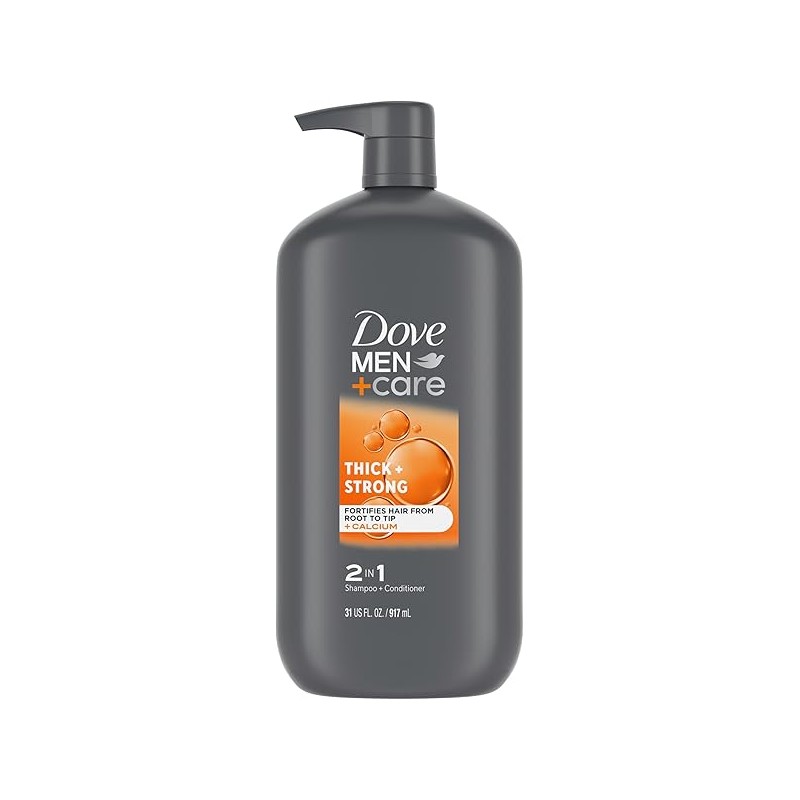 DOVE MEN + CARE 2-in-1 Shampoo + Conditioner Thick + Strong for Fortifying Hair from Root to Tip, with Calcium, 31 oz