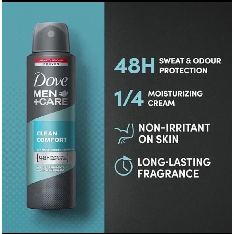 Dove Men+Care Clean Comfort Antiperspirant Deo Spray - 250 ml (8.4 oz) - 3 Pack