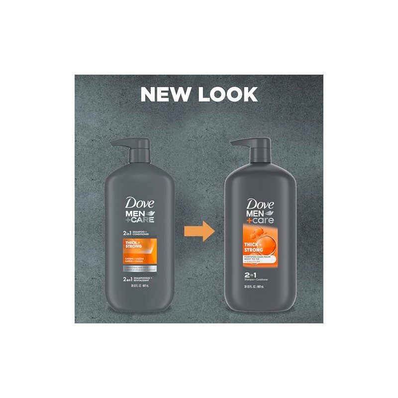 - Dove Men+Care Thick + Strong 2-in-1 Shampoo and Conditioner is designed for men with fine and thinning strands who want stronger, more resilient hair.