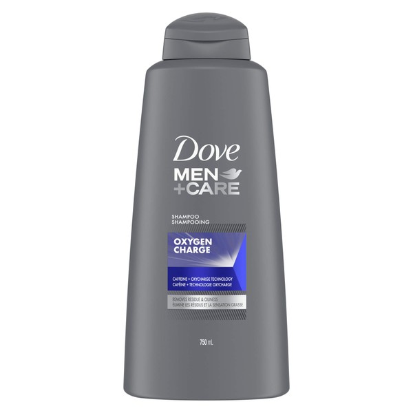 - Dove Men + Care shampoo formulated with caffeine and OxyCharge Technology