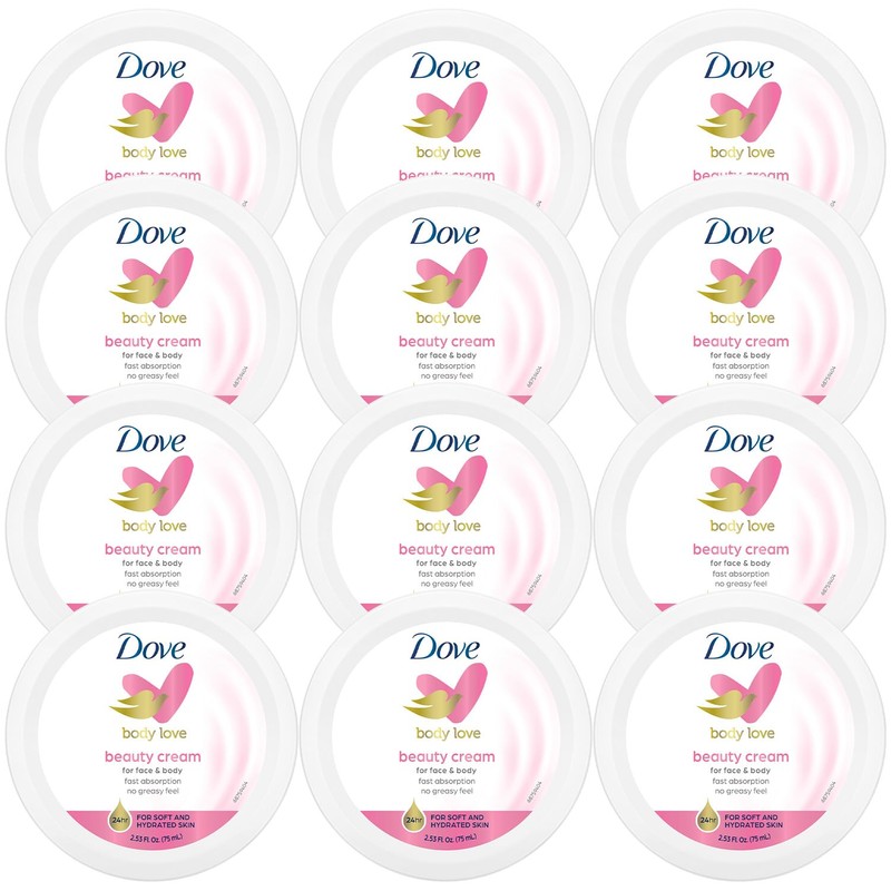 Dove Lotion, Beauty Cream - Light, Fast-Absorbing Face and Body Cream for Normal to Dry Skin, 24-Hour Moisture, Travel Size, 2.53 Fl Oz (Pack of 12)
