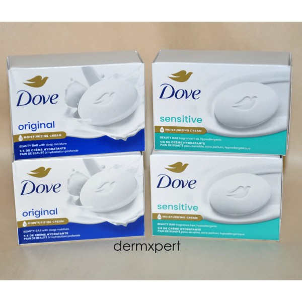 Dove Original Soap Bar 3.75oz + Sensitive Soap Bar 3.75oz (2 Each) - NEW, SEALED