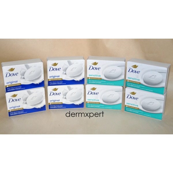 Dove Original Soap Bar 3.75oz + Sensitive Soap Bar 3.75oz (4 Each) - NEW, SEALED