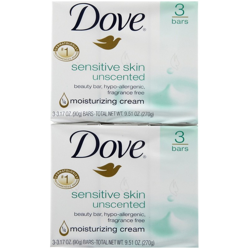 Dove Sensitive Skin Beauty Bar, Unscented, 3 Count, Pack of 1
