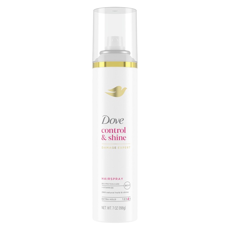 - Dove Style+Care Extra Hold Hairspray has a fast-drying formula