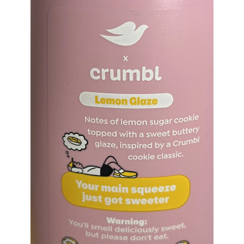 Dove X Crumbl Lemon Glaze BodyWash. Limited Edition 20 Oz Moisturizing Formula.