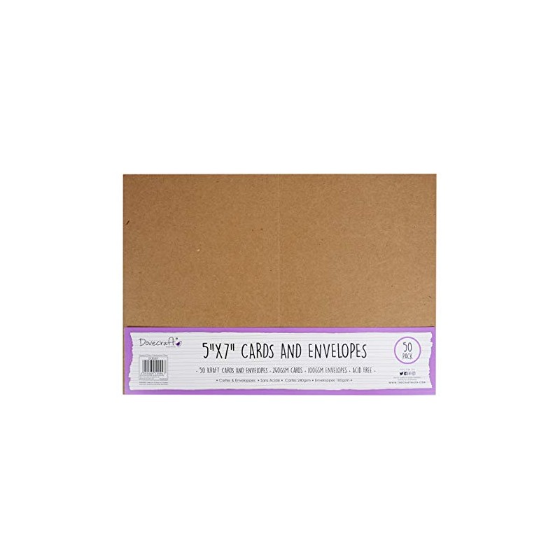 Dovecraft DCBS201 Essentials-Cards & Envelope Blanks-240 GSM 100gsm Envelopes-5"x7"-Kraft-Pack of 50-for Card Making, DIY, Party, Papercraft & Home Décor-Acid Free, Brown, 5" x 7"