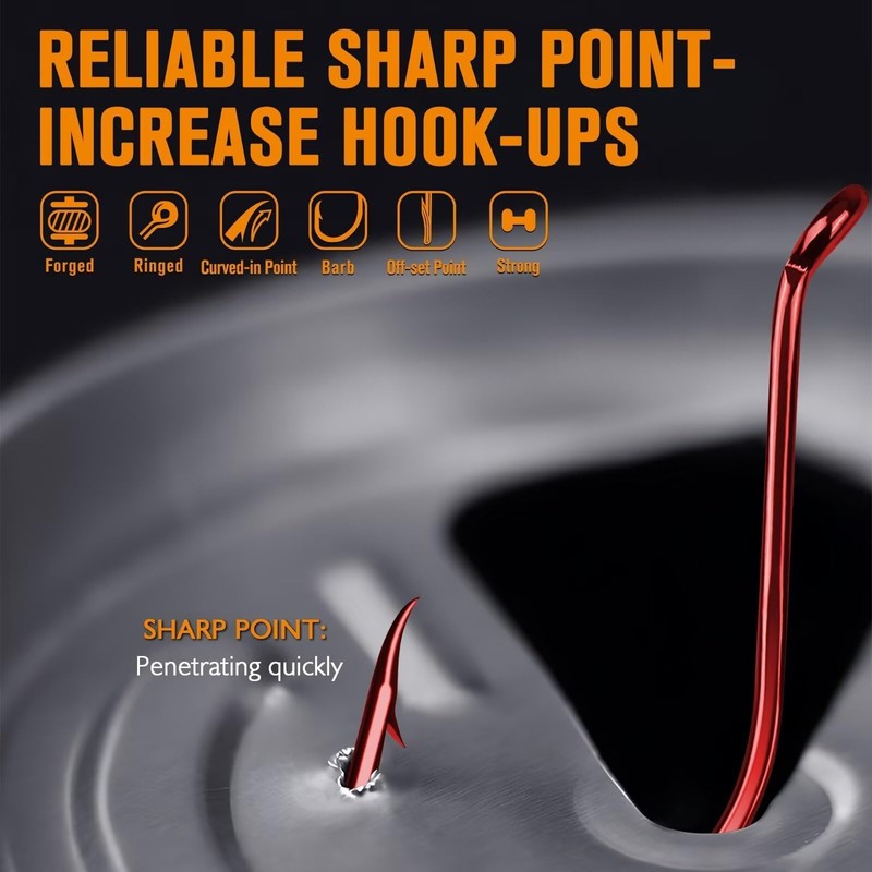 - 14 SIZES FOR VARIETY CONDITIONS: Best bang for you buck! There are 14 sizes and 2 colors of hooks to choose from Red and Black, #10*100PCS, #8*100PCS, #6*100PCS, #4*100PCS, #2*100PCS, #1*100PCS, 1/0*100PCS, 2/0*100PCS, 3/0*100PCS, 4/0*80PCS, 5/0*70PCS, 6/0*60PCS, 7/0*50PCS, 8/0*50PCS. Both novices and experienced can quickly get started with this hook! NOTICE: Please check the size carefully before ordering!