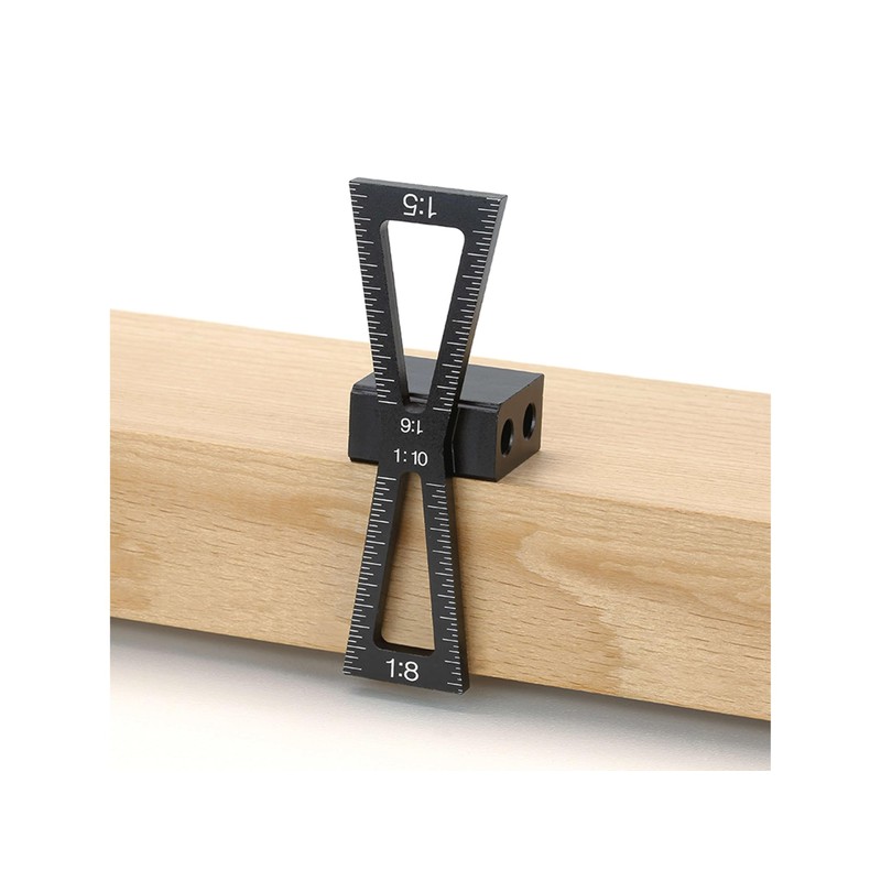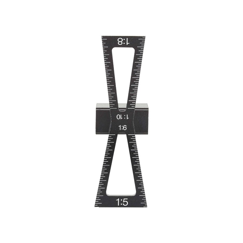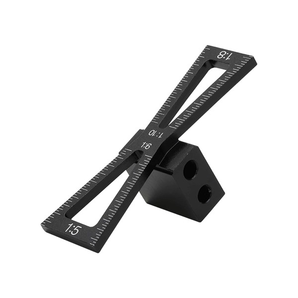 With the dovetail marking aid from Sintron Tools, you are well equipped for carpentry level woodwork. With the precise, small tool, the required values in ratios 1:5, 1:6, 1:8 and 1:10 can be easily and precisely transferred to your wood workpiece. The cleanly CNC machined tool made of anodised aluminium with white markings is stable and durable and makes work much easier. Features: - Ideal for woodwork at carpentry level - values can be easily and precisely transferred to wooden parts - Transferable ratios of 1:5, 1:6, 1:8 and 1:10 - CNC-machined tool made of anodised aluminium - With white markings applied - Stable and durable - Dimensions (H x W x D): 74x23x24 mm