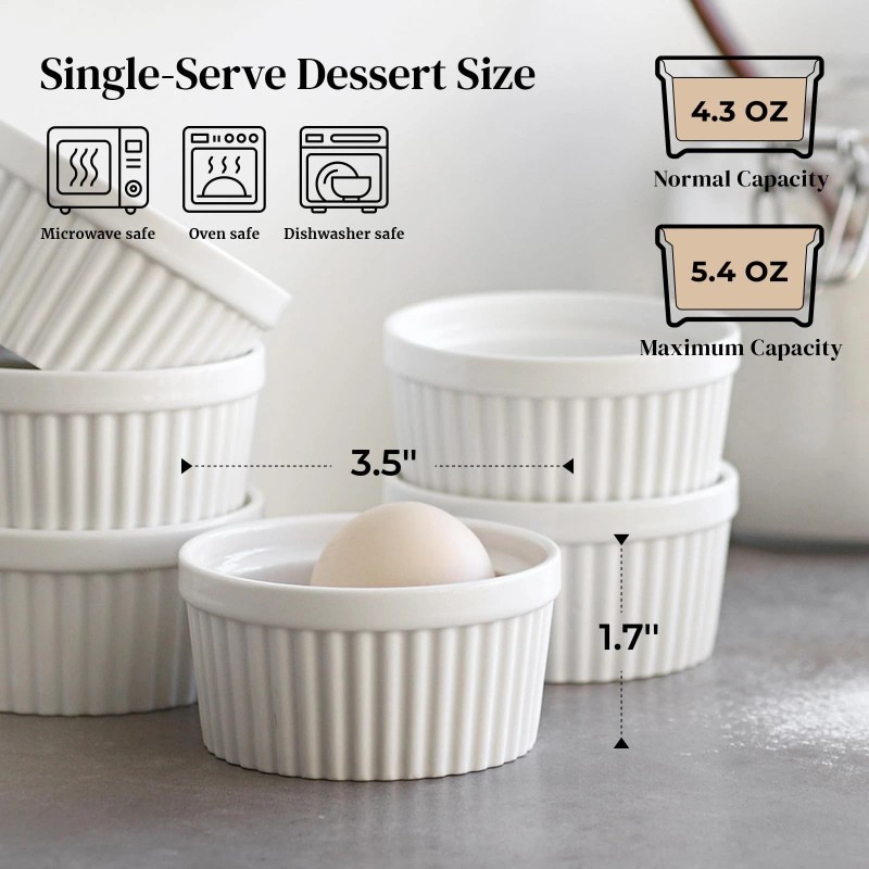Dowan 4Oz Oven Safe Ramekins Set of 6 for Creme Brulee Souffle Porcelain White