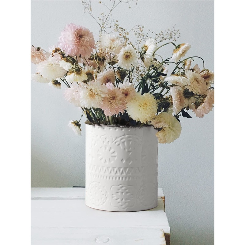 - Dimpled Imprint Fits Your Kitchen DÉcor. Beautiful design, awesome color, and modern look must be a perfect and elegant compliment to your kitchen. This farmhouse white utensil holder for countertop will catch your eye at first sight.