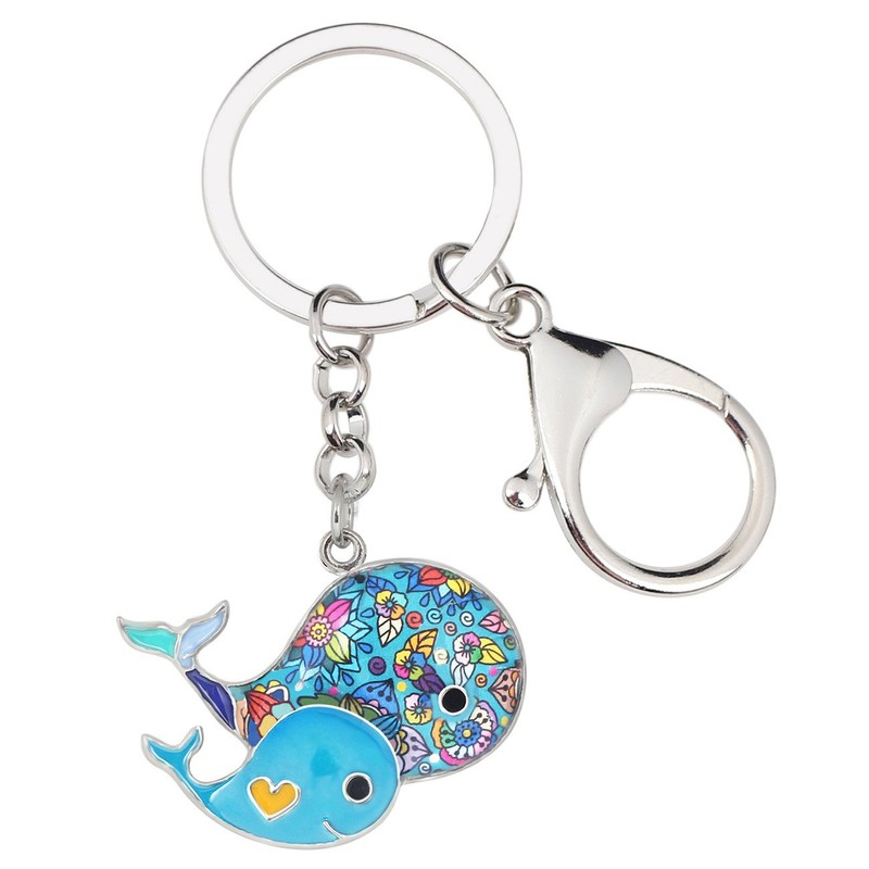 DOWAY Pair of Enamel Dolphin Keyrings Cute Fish Key Ring Pendant for Handbags Purses Bags Belt, blue