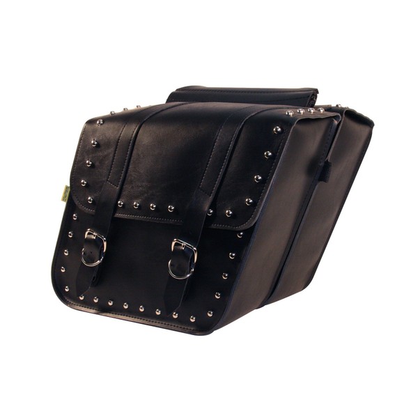 Dowco Willie & Max 58702-01 Ranger Series: Studded Synthetic Leather Motorcycle Slant Saddlebag Set, Black, Universal Fit, 30 Liter Capacity