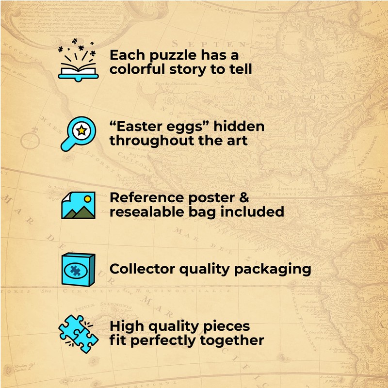 - Each puzzle has a colorful story to tell
